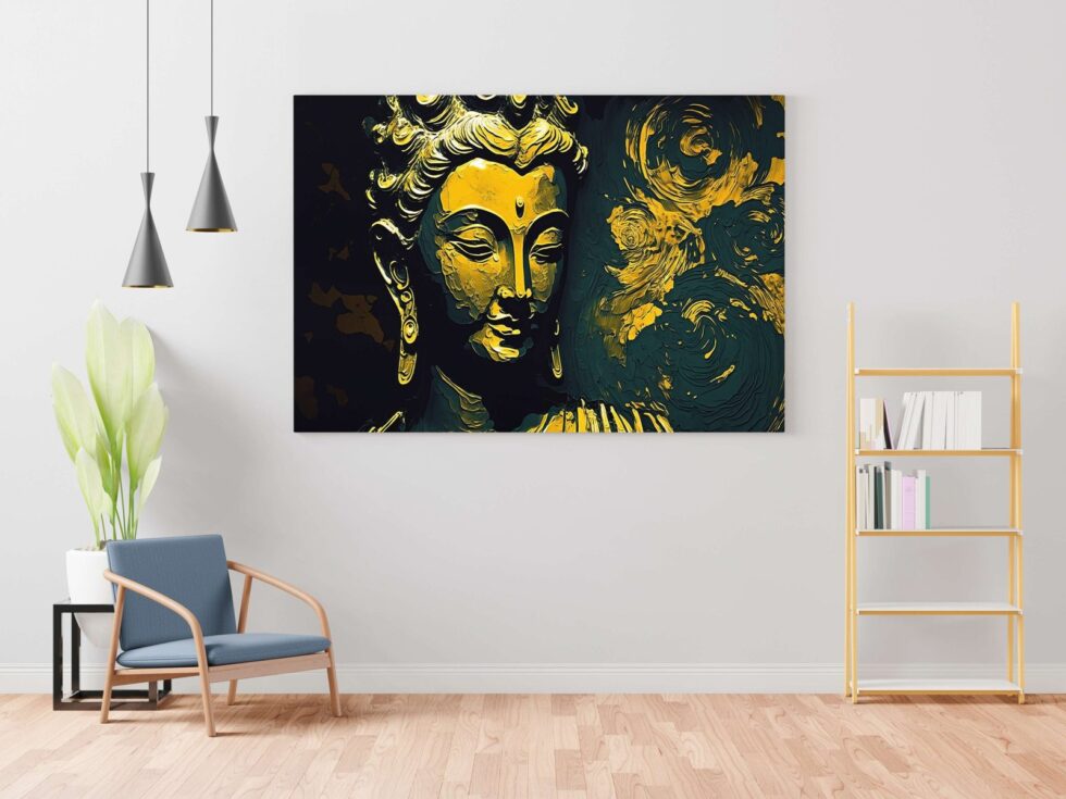 Transform your space into a sanctuary of tranquility with our exquisite Buddha wall paintings. Crafted with meticulous detail and imbued with spiritual serenity, each piece radiates peace and harmony. Elevate your home decor with these timeless artworks, perfect for creating a serene ambiance in any room. Explore our collection and invite the essence of enlightenment into your living space today The canvas is carefully stretched over a durable wooden frame, creating a gallery-quality finish that adds a touch of elegance to any room. Whether you’re looking for a Buddha framed painting for wall or a Buddha big wall painting with frame